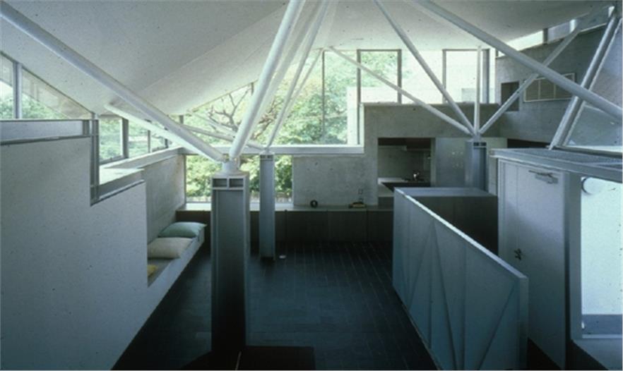 媒體:您從1969年開始做第一個(gè)住宅項(xiàng)目“散田的家”開始,一直到2004年的“EGOTA?HOUSE”,作品的風(fēng)格從封閉的箱子到“家”形的人字屋頂,一直最后對(duì)“家”形的解構(gòu),這種變化的原因是什么?