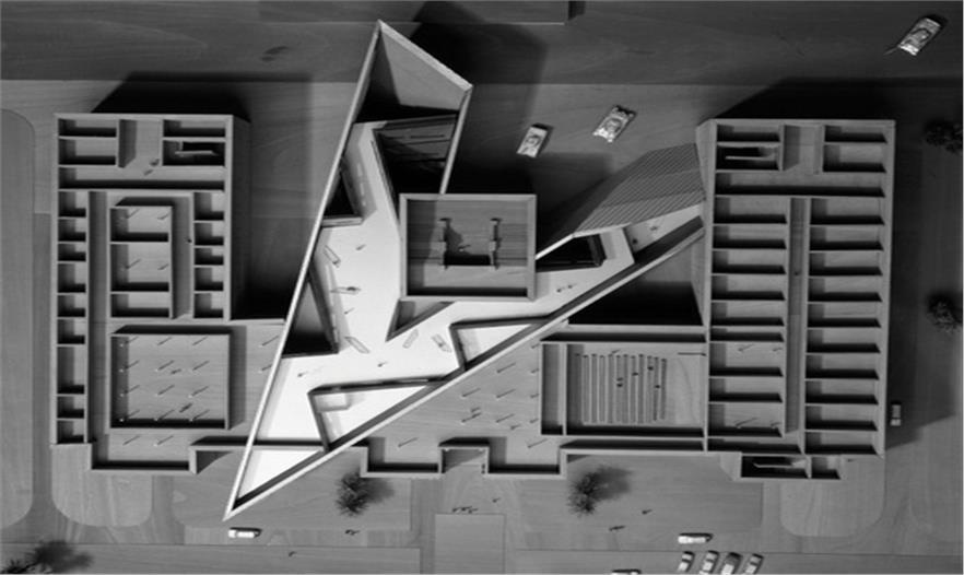 里伯斯金設計的箭頭狀結構正好穿過容納博物館的舊軍械庫。