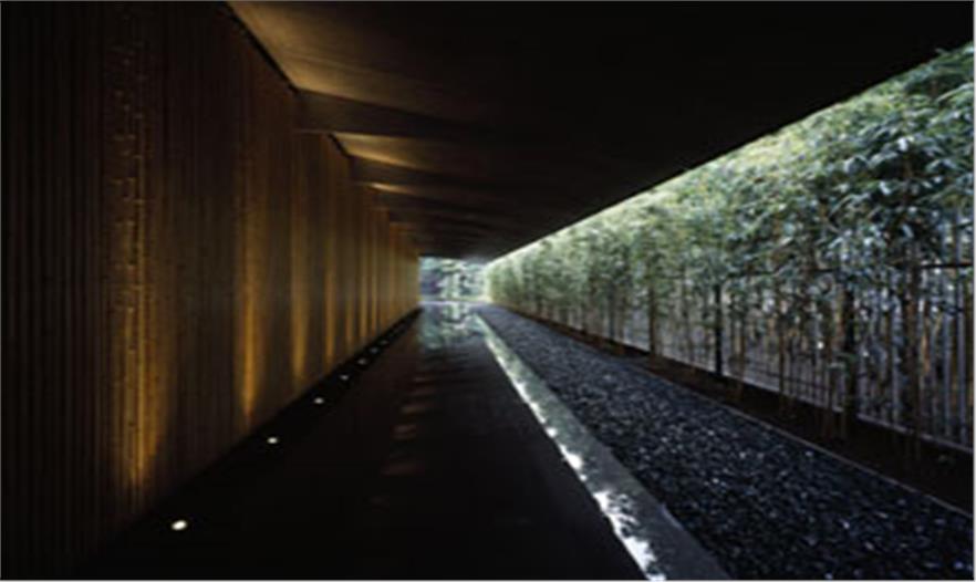 隈研吾:其中,“根津美術(shù)館”為我思考傳統(tǒng)的日本建筑提供了一個機會。我認為在日本傳統(tǒng)建筑中發(fā)現(xiàn)了許多有益的東西。在20世紀(jì)初,弗蘭克-勞埃德-賴特和其他的建筑師,從日本建筑得到許多啟發(fā)——例如合并長水平線的思想和內(nèi)部及外部之間透明的思想。我認為從日本建筑還可能發(fā)現(xiàn)許多別的啟發(fā),例如花園的設(shè)計。