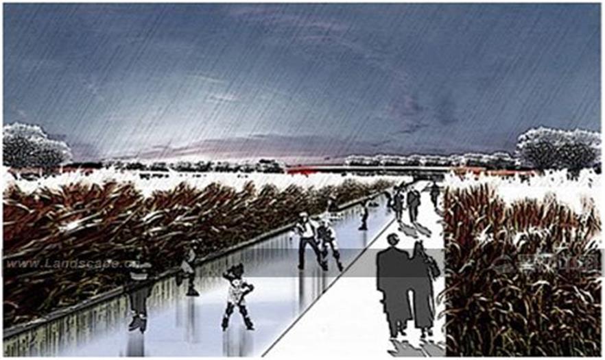 ??? 俞孔堅:事實上,我們提出的蘭特公園設(shè)計方案也是基于類似的概念,方案入圍了但最終并未被采納。我們提出在芝加哥城市中心營造一塊玉米田,通過雨洪灌溉,使之具有生產(chǎn)性,同時融入到社區(qū)里,創(chuàng)造出了一種特性。但是顯然他們并不喜歡這一點。