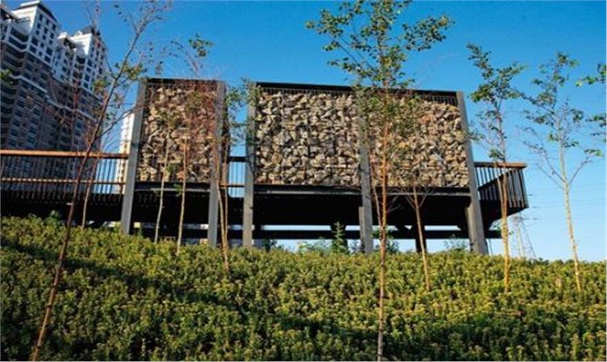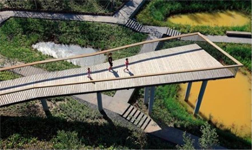 俞孔堅:這是十分關(guān)鍵的一點。經(jīng)濟就意味著生態(tài)。大自然本身是沒有浪費的。如果生物得不到生存所需的最小能量,那么它們就會死亡。因此自然本身也是經(jīng)濟的。我們應(yīng)當將城市作為一個有機體考慮,公園應(yīng)提供所有這些服務(wù)。同時,這個項目又是非常經(jīng)濟的。我們使用了一種非常簡單的、環(huán)狀的“移平-填充”系統(tǒng),使生態(tài)消費降到最低。我們修建了空中步道,利用木材、竹子和石頭在公園內(nèi)部構(gòu)建了一種“叢林”:所有這些都采用的是本地材料。同時,這也成為了一個重要的社交節(jié)點。
