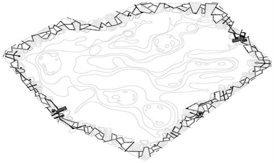 群力國家城市濕地公園總體規(guī)劃圖。土人設(shè)計使用了一種簡單的“移平-填充”的技術(shù),設(shè)計出了一條池塘和山丘相連接的“項鏈”,作為緩沖地帶,環(huán)繞中心濕地區(qū)一周。