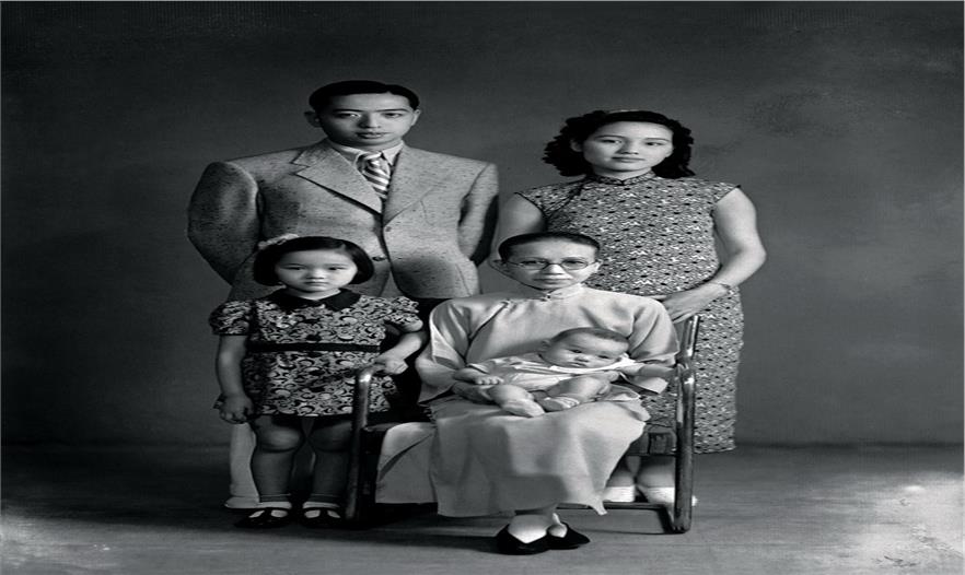 1942?年,天津,還沒滿月的馮驥才與姥姥、父母和姐姐合影。