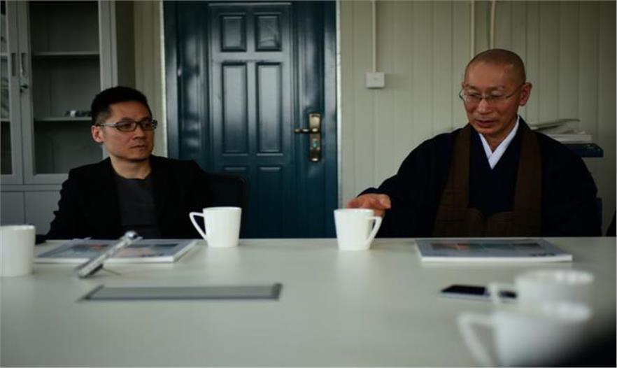 枡野俊明(右)與陸?zhàn)ㄗ螅┙邮懿稍L?