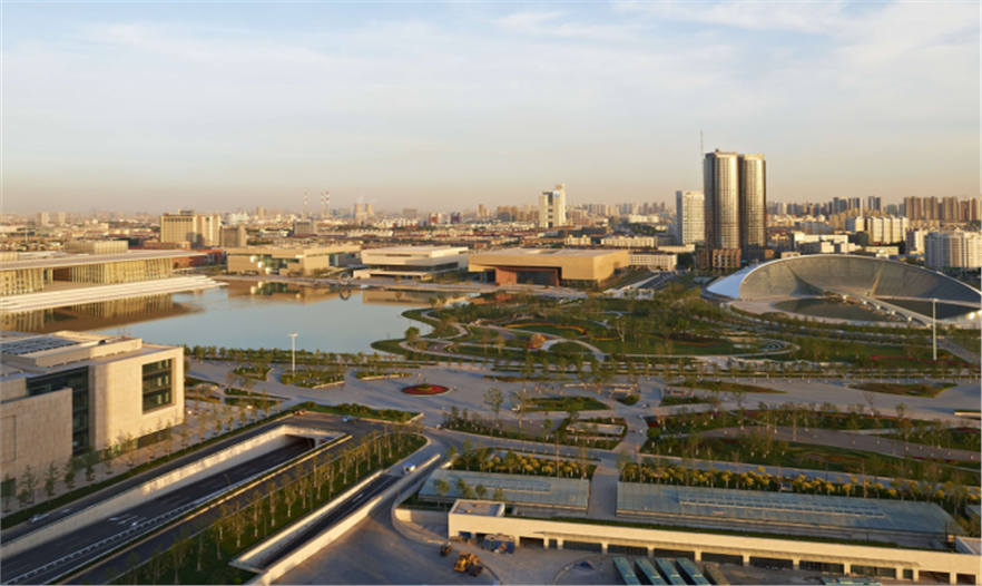 Then several competitions were followed. One of the competitions was for the culture park in TCC in Tianjin with our partner RhineScheme and we won the competition. In this project, we actually designed this big lake in TCC in Tianjin. That was the second competition, the realization competition. We have been part of this project and we have done the landscape architecture and water management design. We implemented sponge city concept to the project, which means the whole entire set collected storm water, treat it and release to the central lake. Through this project, Tianjin has become more and more stable partner for us as a client. The other project is the Tianjin airport GC Park, and we did it with GMP, the architects of which also did the architecture of Opera in the TCC side. The design of the project is a round lake in the middle, surrounded by commercial areas. And the landscape design was integrated with water management. These are the big projects in Tianjin. There are some other projects and competitions together with Foster Architects, such as Guorui in Beijing, May Flower in Guangzhou, the new development with Twin Tower in Chongqing and the new commercial center of Huawei in Hangzhou together with Henn Architects.