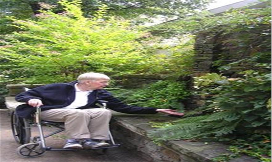 (3)近距離體驗(yàn):老人感官較為遲鈍,往往倚賴近距離接觸,強(qiáng)化感知和體驗(yàn)。因此養(yǎng)老地產(chǎn)的微景觀處理,需細(xì)密考慮視覺、嗅覺,甚至觸覺的綜合體驗(yàn)。如植栽配置,除了接近游徑、休憩點(diǎn)序列安排外,宜選擇色彩、質(zhì)感對比明顯,帶有花果香味,可供撫摸、接觸無礙的植物。同理,養(yǎng)老社區(qū)里無需過大的水體,帶有淙淙流水聲、略有水霧的小型水景,更符合老人近距離體驗(yàn)的需求。