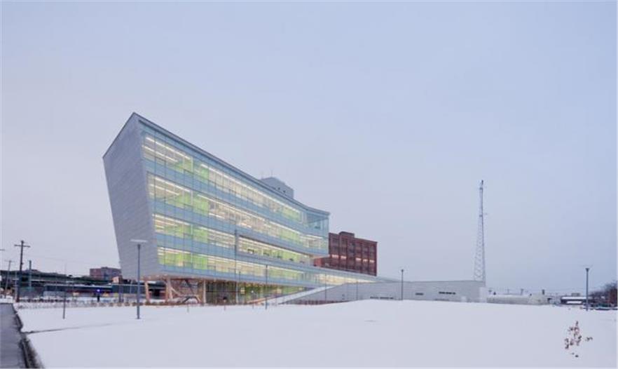 在我的作品中,我最近在一個特別的項目中采用了膜材料,一座可以移動的音樂廳。新的材料非常具有力量。比如我們用的膜材料可以完全吸收雨滴滴落的聲音。同時還有可以吸收和從新分配聲音的材料,在演藝空間中甚至可以不用使用揚聲器,因為聲音在運動過程中自動被放大了。在馬薩諸塞州劍橋諾華的新實驗室,我們采用一種在玻璃種鑲嵌的銅來控制陽光,可以為室內加熱。