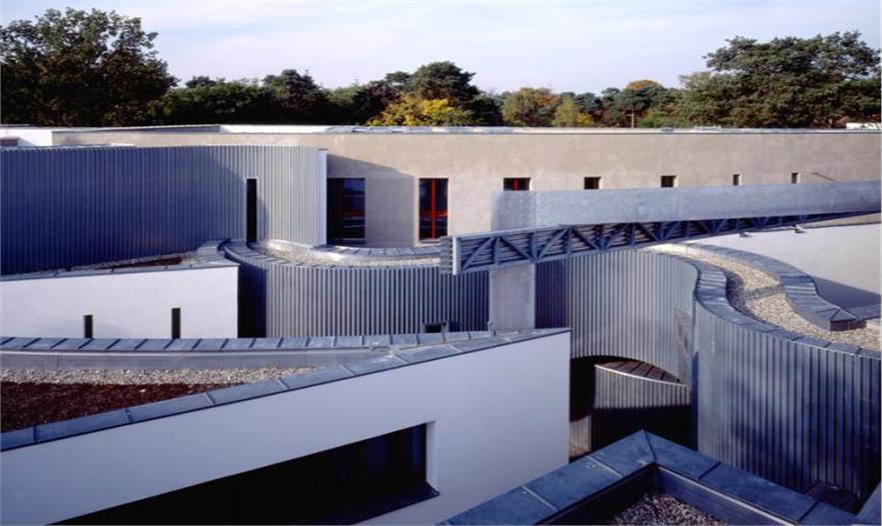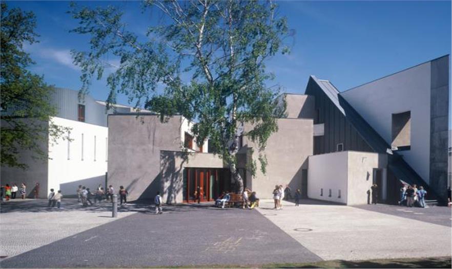 澤維·霍克(Zvi Hecker): 嗯,它也不算是我每一座建筑的來源。這棟房子是大屠殺后在柏林建造的第一所猶太學(xué)校。我來自以色列,一直都在思考:我能為柏林的孩子帶來什么?花,是大自然的禮物,而向日葵又是以色列的常見花卉。從向日葵出發(fā),設(shè)計不斷演變出一系列的連續(xù)變化的圖像。它在建造階段便更像是一種帶有蜿蜒道路和庭院的小型城市,而不僅僅是一棟建筑。繼而,當(dāng)承重墻的示意模型被制造出來時,我們更加驚訝地發(fā)現(xiàn)了隱藏在設(shè)計之中有很多"打開的書頁"。我們之前并沒有意識到,在希伯來語中,學(xué)校(Beth-Sefer)的字面意思便是"書之家"。