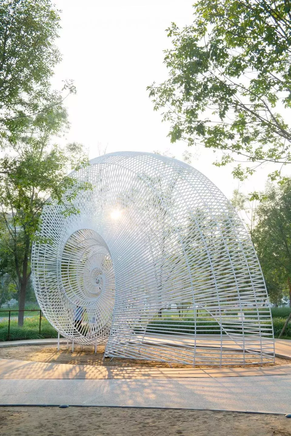 西安創(chuàng)意谷風(fēng)之亭。在位于4層樓高的屋頂花園之上,設(shè)計(jì)團(tuán)隊(duì)希望利用場地多風(fēng)的特征,設(shè)計(jì)一個(gè)與風(fēng)相關(guān)的裝置,并在設(shè)計(jì)過程全程中對材料、尺度、模型、空間感受等進(jìn)行了大量嘗試。最終建成效果或許并不完美,但很難想象這類設(shè)計(jì)構(gòu)想可以通過常規(guī)的設(shè)計(jì)工作模式產(chǎn)生。 ? 張?zhí)凭坝^ / 攝影:張海