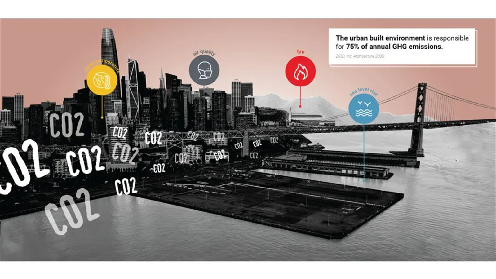 ▼城市建成環(huán)境中有75%的全球溫室氣體排放量,其中約35%的排放量來自建筑外部