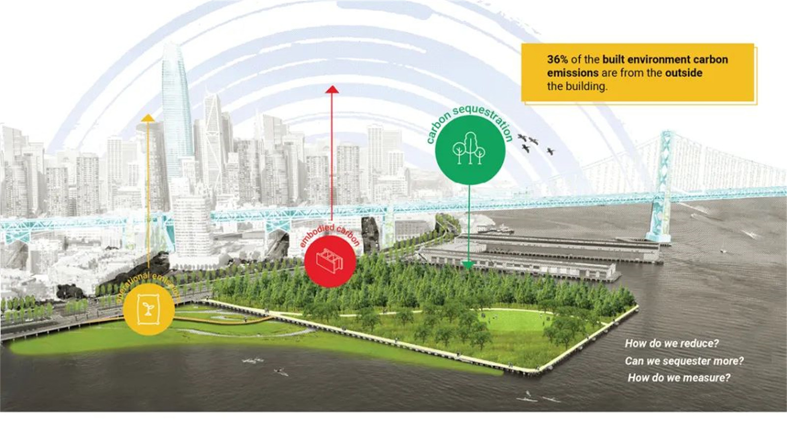 目前,我們可以展示我們是如何解決城市建成環(huán)境中75%的全球溫室氣體排放量。其中40%來自建筑物,建筑師和結(jié)構(gòu)工程師正在研究這些。另外的約35%來自建筑物外部。這是景觀設(shè)計師、規(guī)劃師和土木工程師負責(zé)的部分。我們應(yīng)該共同努力來改進這一部分。