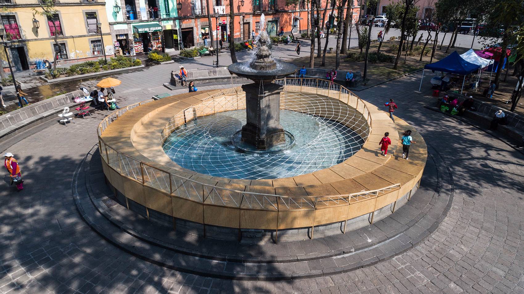 “AROS”是墨西哥市政府舉辦的“城市玩具”競賽的冠軍作品。這項比賽旨在為歷史城區(qū),特別是Loreto廣場區(qū)域設(shè)計一個臨時性的游樂場地。