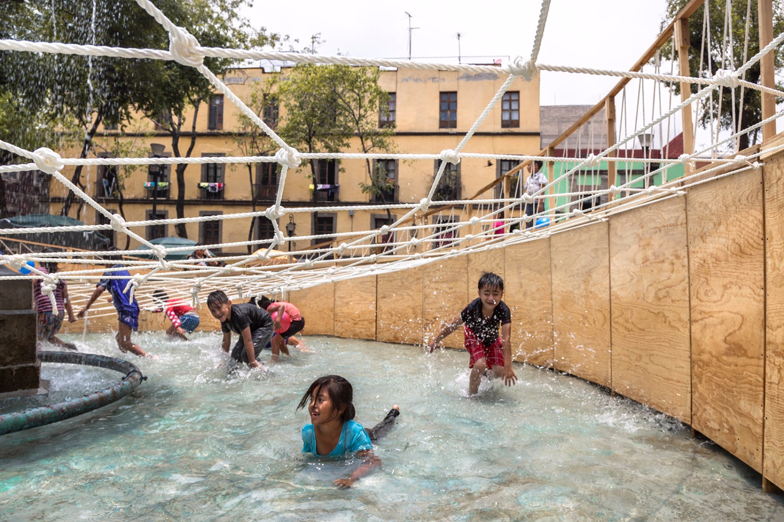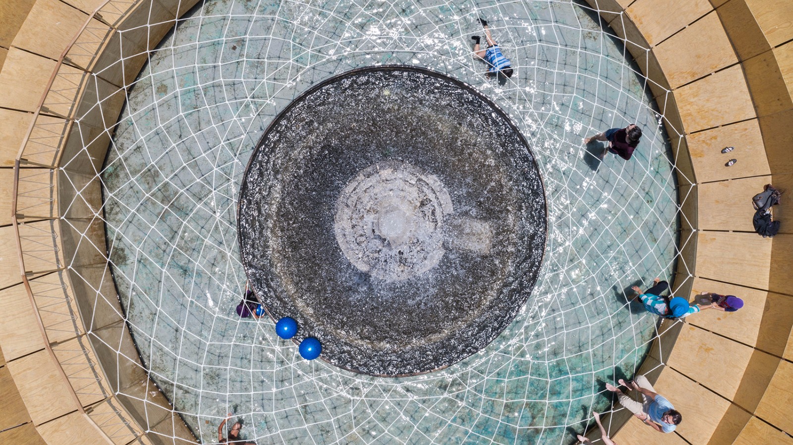 ▼水池上的織網(wǎng)在鼓勵互動游戲的同時還起到了保障安全的作用