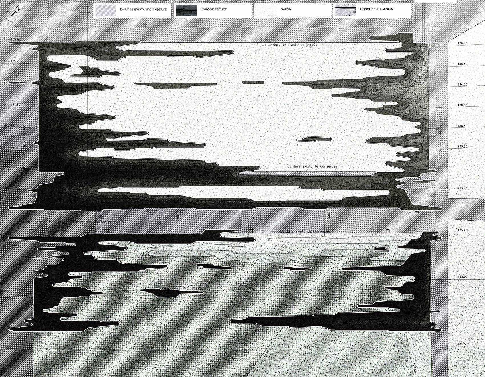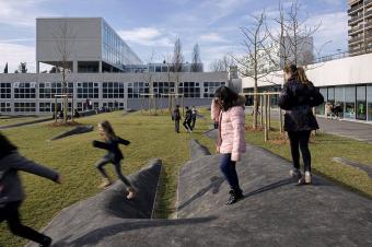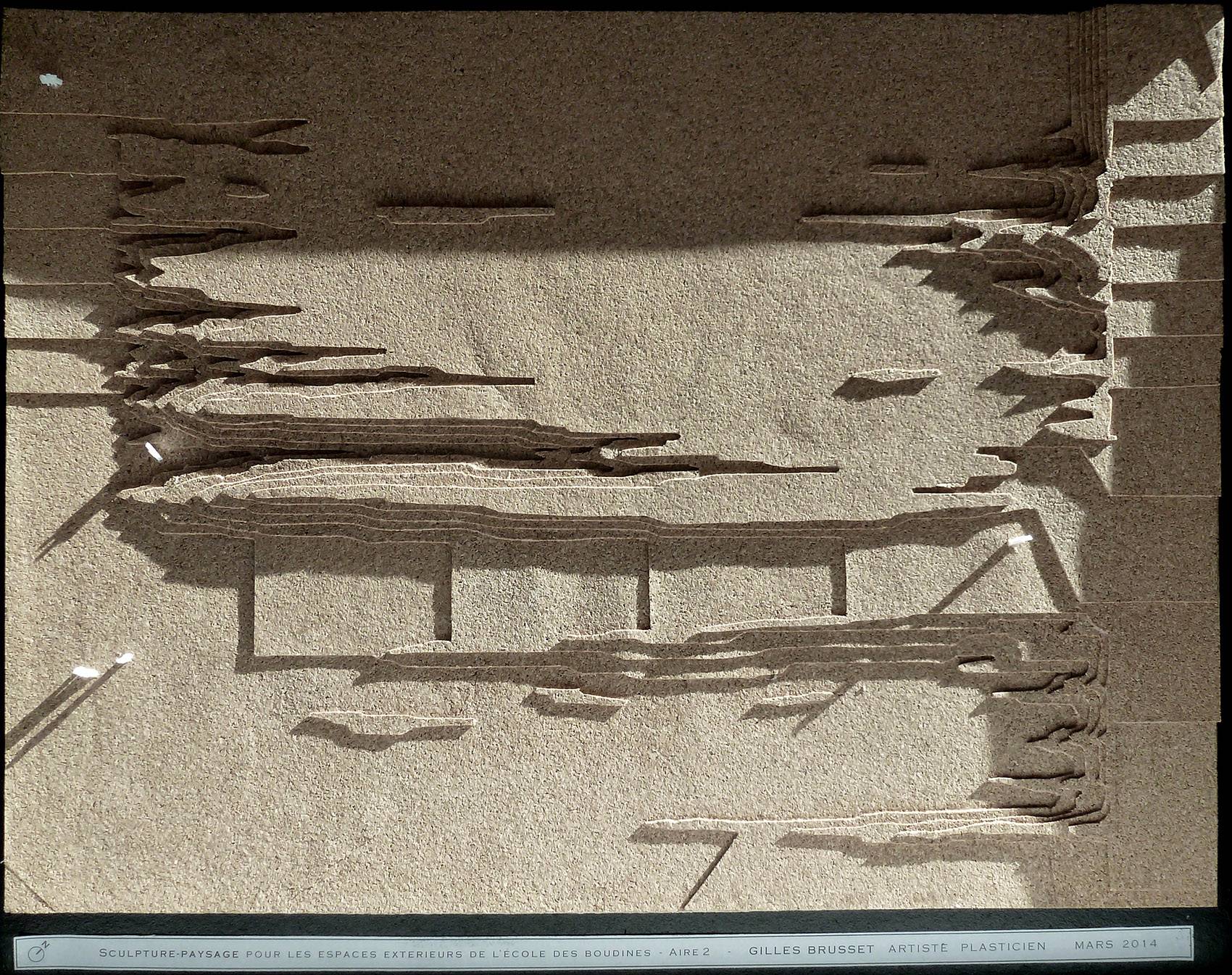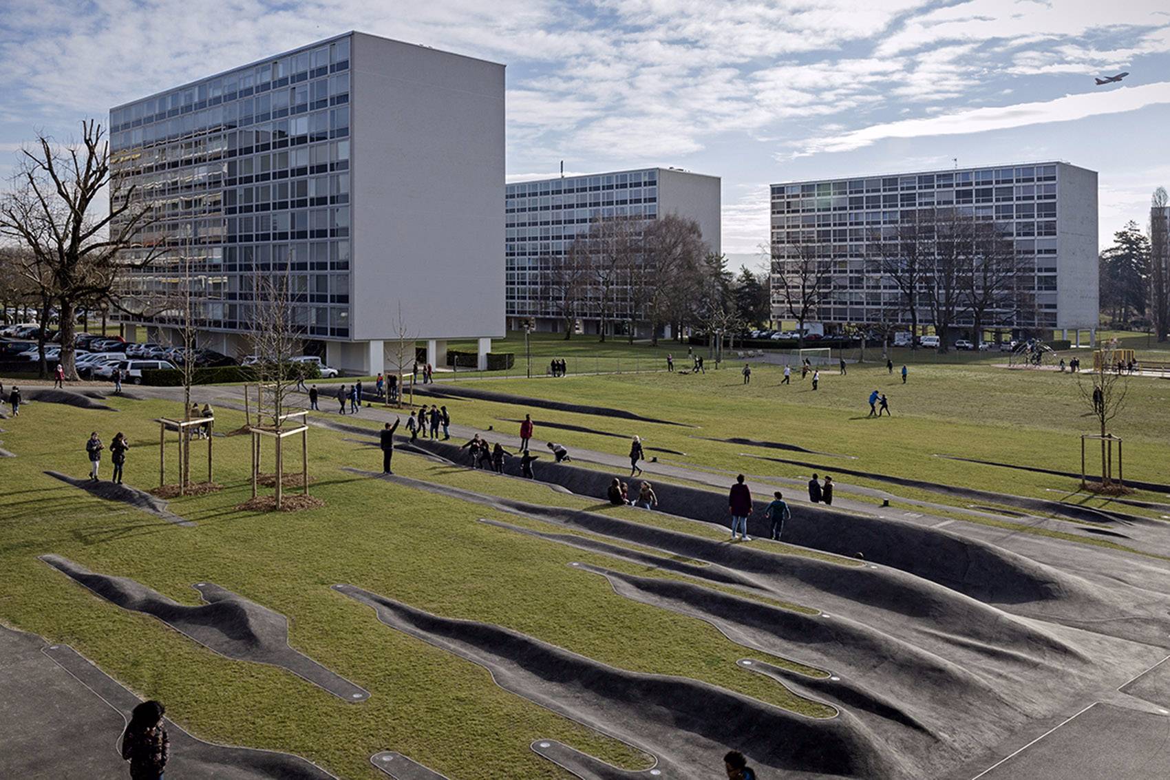 該雕塑體系以動(dòng)態(tài)起伏的形式在école des Boudines大樓的室外地面上自由展開,宛若從Meyrin公園冷漠的直線形式中解放出來(lái)。