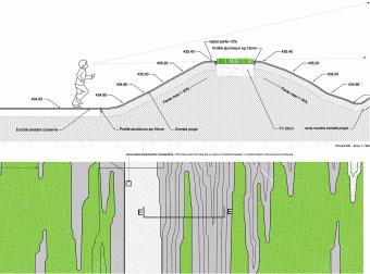 該雕塑景觀位于設(shè)計(jì)風(fēng)格方方正正的Meyrin公園,并緊鄰具有平坦外立面的école des Boudines大樓,而這個(gè)雕塑景觀呈現(xiàn)的則是曲線起伏的形式。這被認(rèn)為是一種白板原則的體現(xiàn),來(lái)表現(xiàn)對(duì)已有的Meyrin公園形式的有意回避。在當(dāng)今“激進(jìn)的”城市里,該藝術(shù)項(xiàng)目所描繪的正是一種與城市規(guī)整筆直面貌背道而馳的景觀形式。