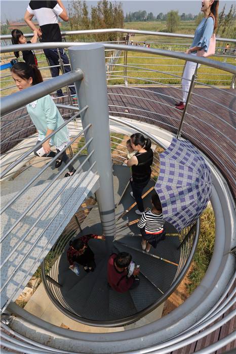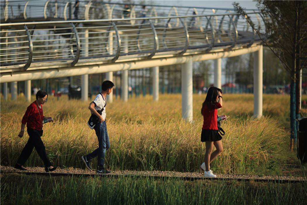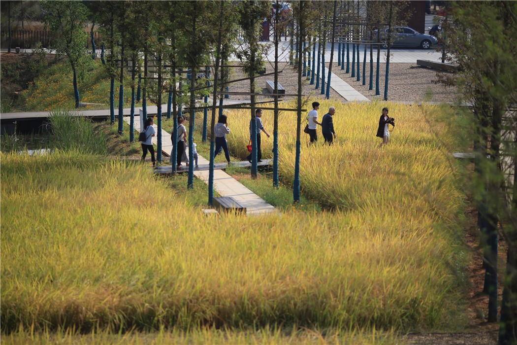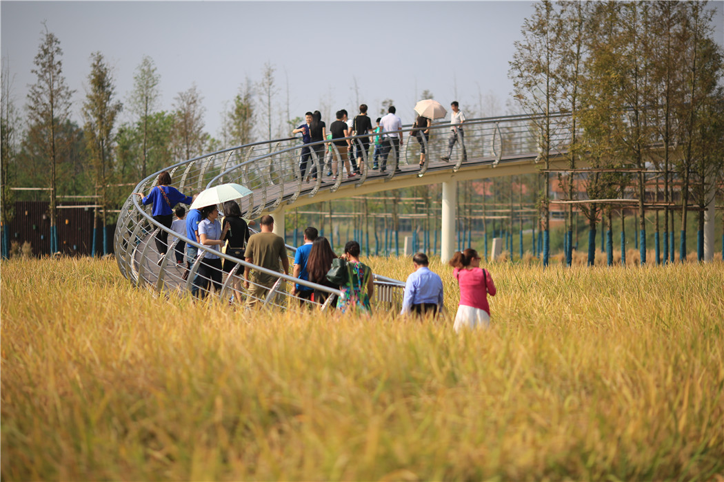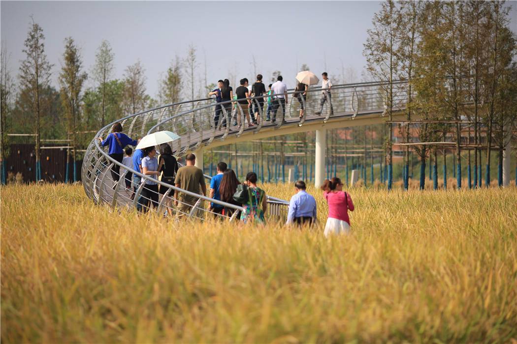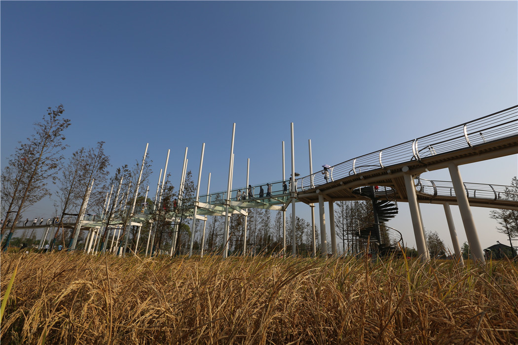 在考古遺址向一個靜靜的舞臺,默默地激發(fā)著人們豐富想象力的同時,戶外水稻博物館的田野猶如一臺活生生的,正上演著活生生的農耕生產?。核痉N植、除草和收割都被設計成與休閑活動相互交織的生動元素,融入了諸如慢跑、野餐、散步、學校和家庭的郊游。玻璃廊橋作為觀景平臺和使人身臨其境,讓城市游客能夠親眼目睹和體驗水稻種植及收割過程,并與勞作的農民進行親密接觸。參觀者亦可以加入到農民勞作之中,體驗其中的艱辛與快樂。在這一景觀中,勞作與休閑、生產與藝術、鄉(xiāng)村與城市、土地所有者和游客、功能和審美之間都不分彼此地融合在一起,營造出美麗和諧的一幕。