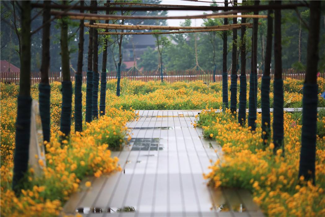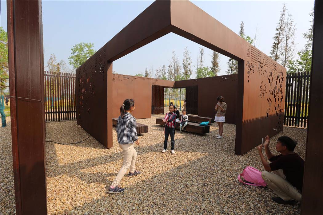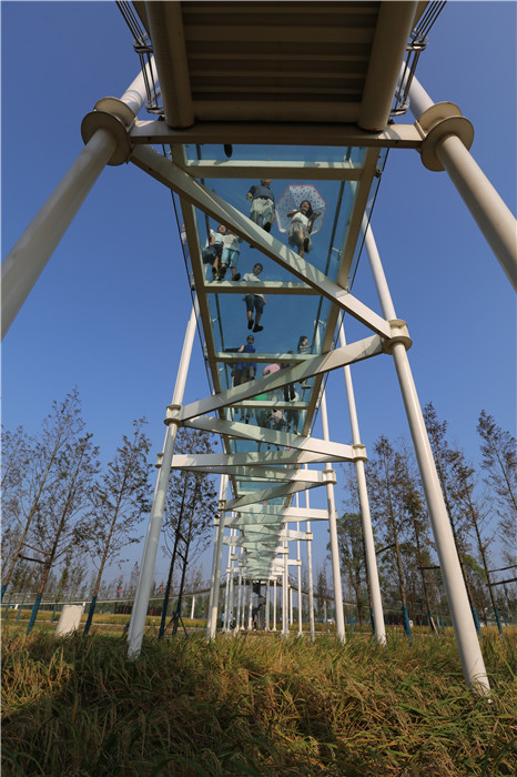 第三,場地內設計了一座架高4米的玻璃廊橋,供游客登高遠眺,使得公園北部的考古遺址盡收眼底。用玻璃作為橋面材料,可以使陽光穿透,保證其下方的農作物有充足的日照。如此,沿橋散步也成為一種奇妙的探險。玻璃廊橋通過四個方向的四個坡道來增強橋身的穩(wěn)定性,并增加了橋與四方田埂的連通性。玻璃廊橋吸引了大量游客,特別是兒童和學生,使原先單調乏味的農業(yè)景觀變得更令人興奮且富有娛樂性。