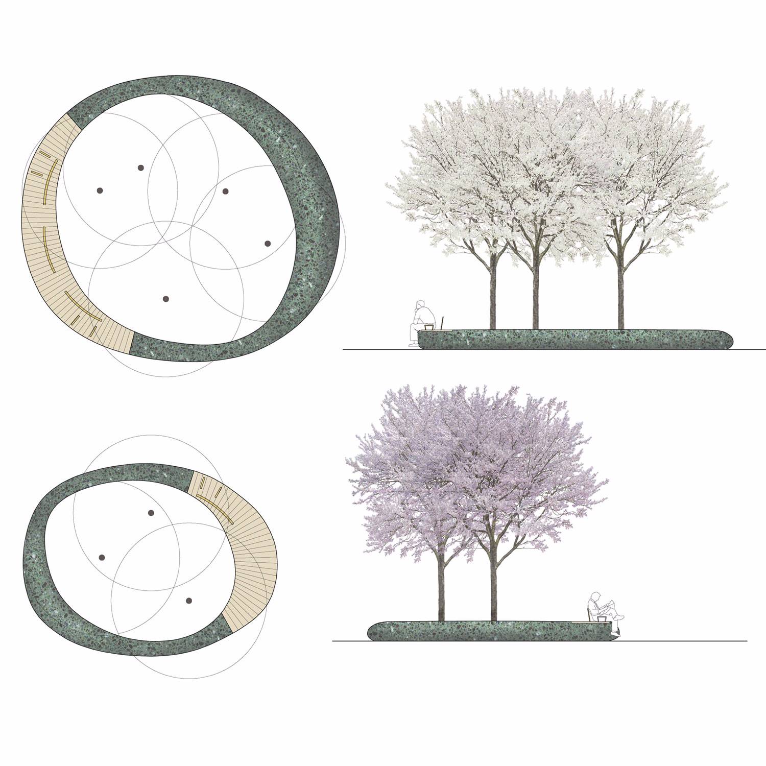 廣場(chǎng)上有四個(gè)大型的柔和的水磨石種植區(qū),噴泉周圍一圈圓形長(zhǎng)凳,長(zhǎng)凳的設(shè)計(jì)能夠滿足多有人群的需求。
