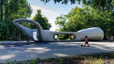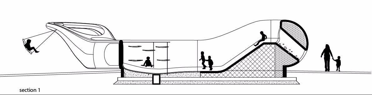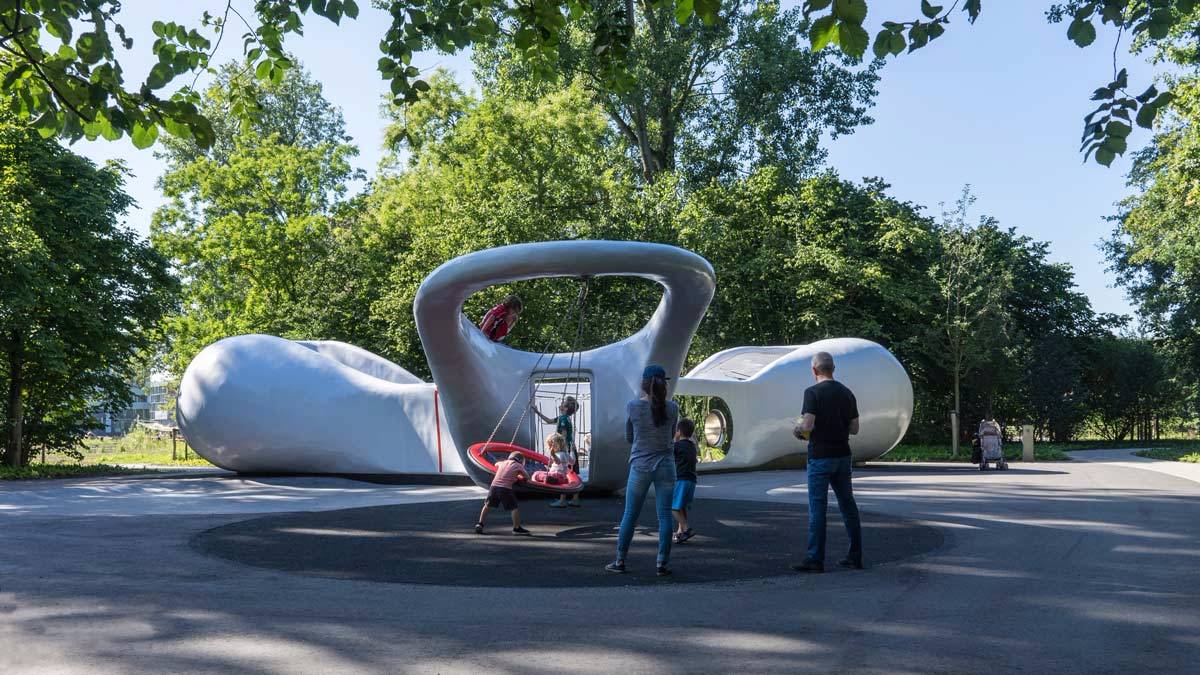 尋找一個對所有年齡組都有吸引力的雕塑形式,同時作為父母的聚會場所,Carve設(shè)計了一個結(jié)合了各種游戲功能有機形狀的雕塑。