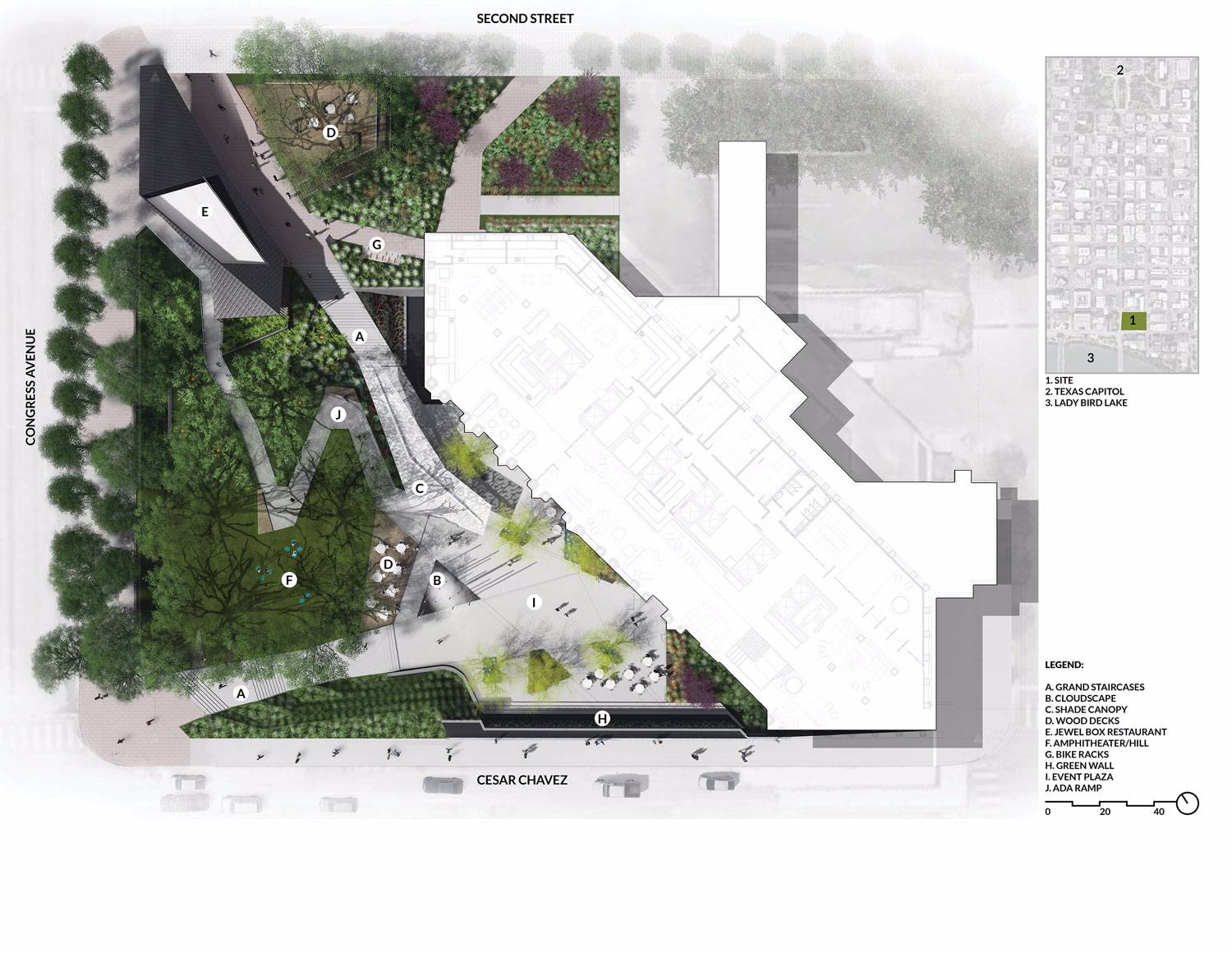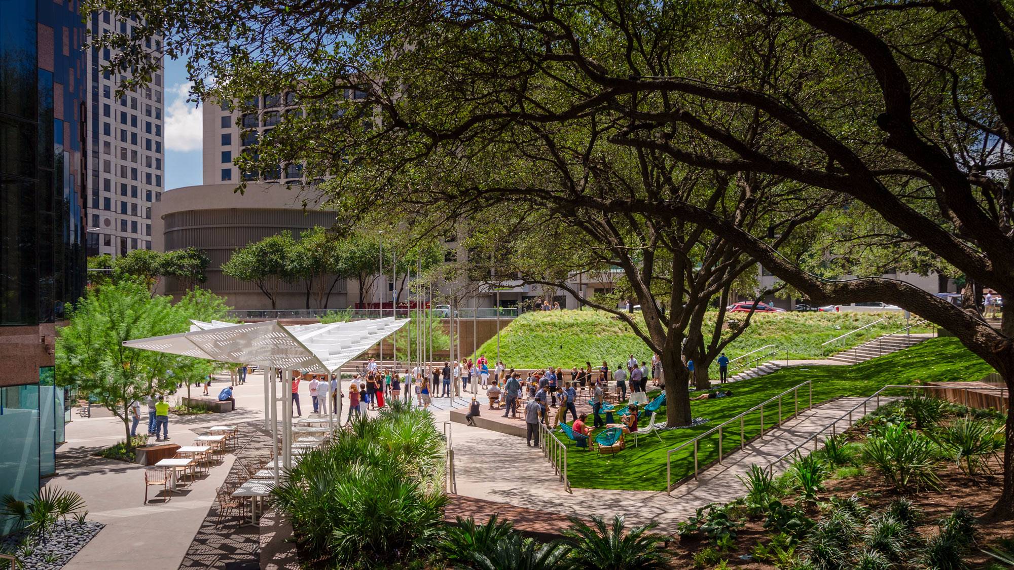 DWG。 Fareground通過(guò)改造未充分利用的辦公廣場(chǎng),在繁華的城市環(huán)境中解放了迷失的景觀。該項(xiàng)目產(chǎn)生了一個(gè)新的城市生活中心; 在綠洲中充分擁抱奧斯汀市中心的社區(qū),聚集,社交,放松,娛樂(lè)和創(chuàng)造。由此產(chǎn)生的景觀通過(guò)精心編程,活力,社會(huì)參與和環(huán)境敏感性來(lái)實(shí)現(xiàn)。