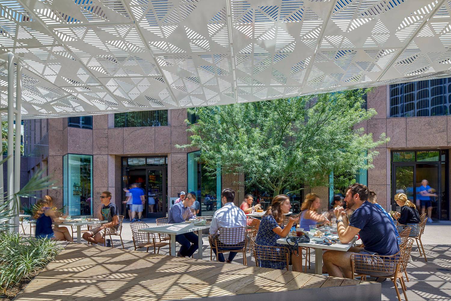 廣場(chǎng)改造與室內(nèi)大堂改造無(wú)縫融合,將美食廣場(chǎng)引入辦公樓。餐廳擁有一些奧斯汀最具標(biāo)志性的當(dāng)?shù)夭蛷d和廚師,在工作時(shí)間和夜間活動(dòng)室內(nèi)活動(dòng)中心。Fareground為當(dāng)前的奧斯汀人口提供了市中心的新心臟 - 社區(qū),活躍和城市,居民,員工和訪客的橫截面。