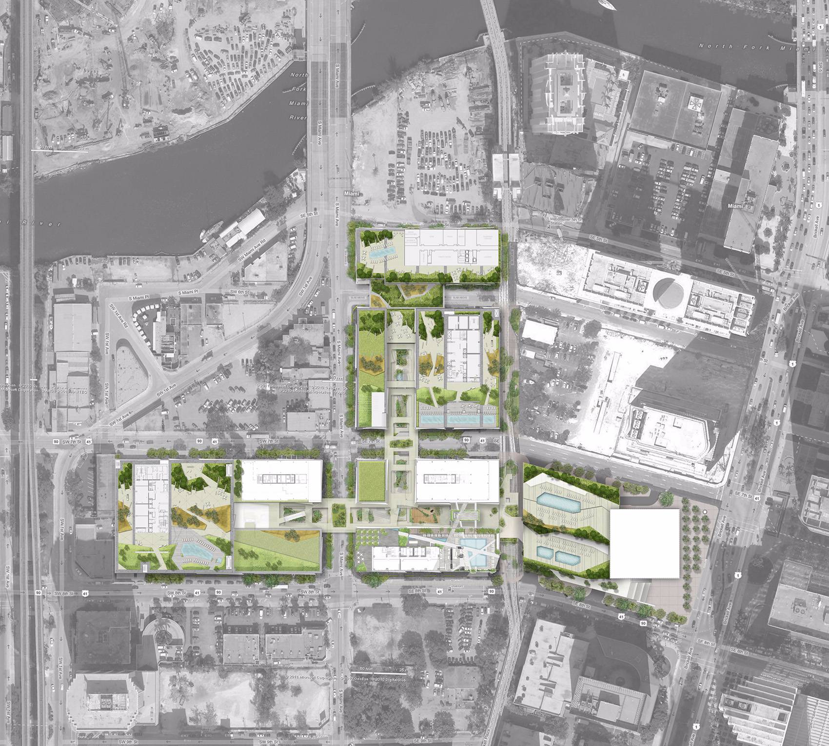 抬升于地面的景觀形成了一個(gè)新的“中央公園”,為邁阿密的城市更新奠定了穩(wěn)固的重心。面積接近1英畝的休閑平臺(tái)突出了南佛羅里達(dá)州珍稀的瀕危原生景觀,在為居民和游客帶來(lái)游覽機(jī)會(huì)的同時(shí),還為當(dāng)?shù)氐奈锓N提供了重要的棲息環(huán)境。人們可以從廣場(chǎng)內(nèi)部的各個(gè)角落欣賞到外部多樣化的景觀,也可以從中央廣場(chǎng)的建筑或周邊的高樓上俯瞰地毯般的綠色植被。