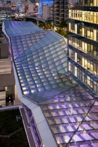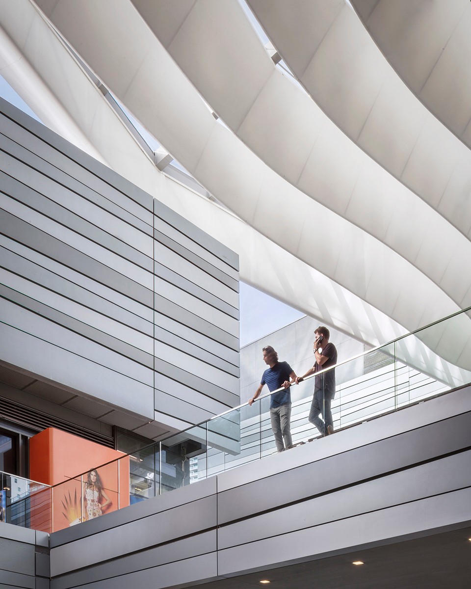 ▼景觀設(shè)計(jì)結(jié)合了15萬(wàn)平方英尺的CLIMATE RIBBONTM頂篷系統(tǒng)