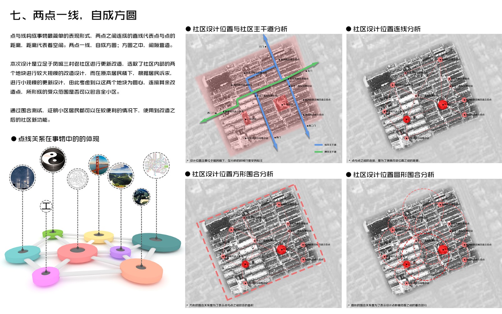 在設(shè)計(jì)過(guò)程中,在對(duì)社區(qū)公共空間使用人群的心理特點(diǎn)、行為特征和特殊需求進(jìn)行分析研究的基礎(chǔ)上,對(duì)社區(qū)公共環(huán)境空間進(jìn)行更新設(shè)計(jì),為社區(qū)居民提供更為人性化的活動(dòng)場(chǎng)所與休閑環(huán)境,提高社區(qū)空間的品質(zhì)。本次設(shè)計(jì)將以社區(qū)內(nèi)部?jī)蓧K公共區(qū)域的改造為主,以每個(gè)居民樓下公共設(shè)施的改造為輔,打造出兼具創(chuàng)新性與實(shí)用性,更適合現(xiàn)代居民生活?yuàn)蕵?lè)的新型社區(qū)。