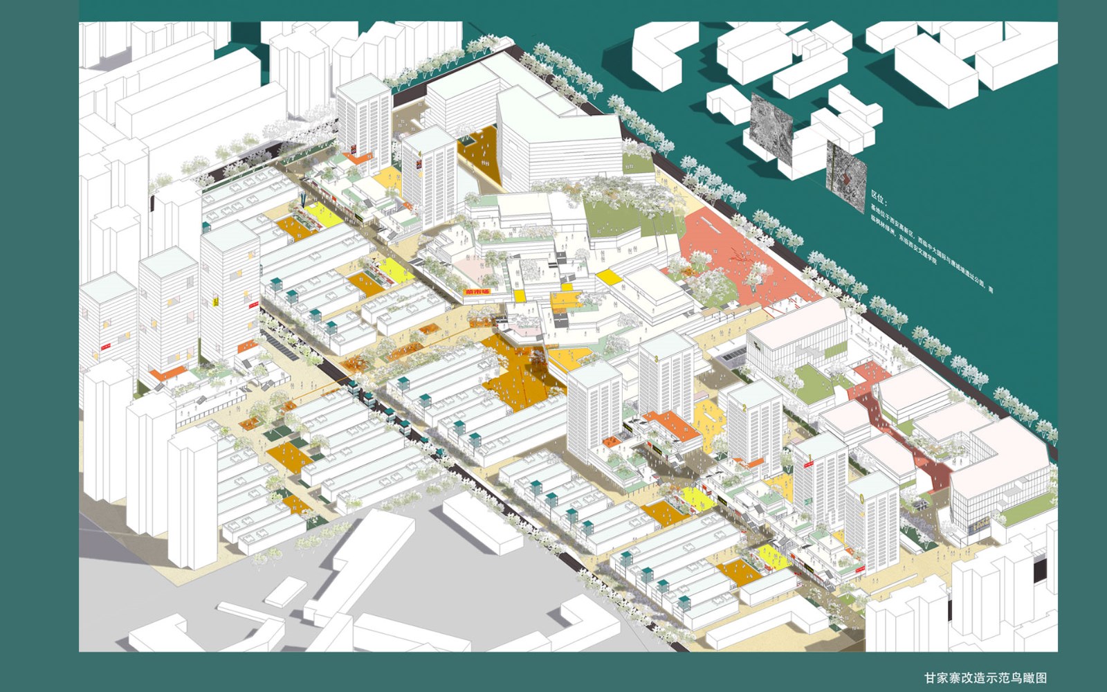 ▲甘家寨空間改造模式圖、甘家寨改造指標(biāo)確定、設(shè)計生成圖、基礎(chǔ)設(shè)施系統(tǒng)圖