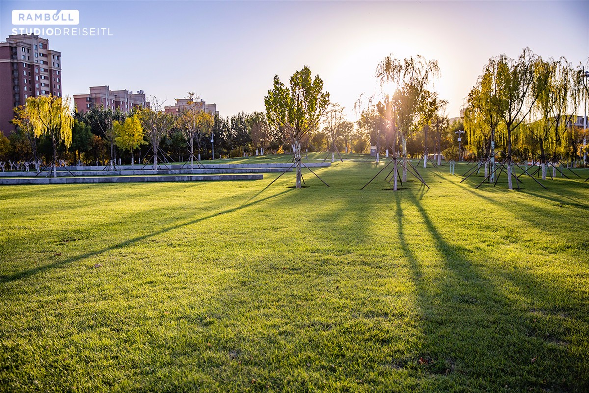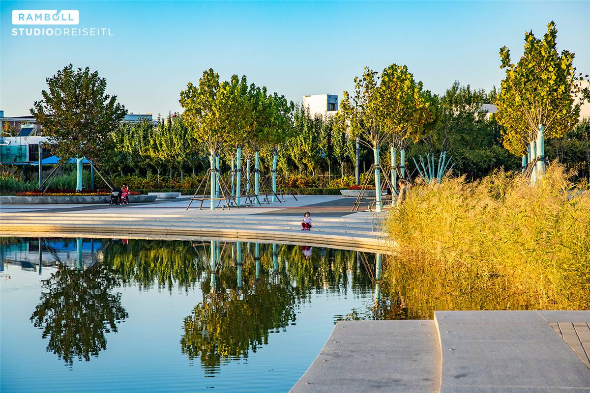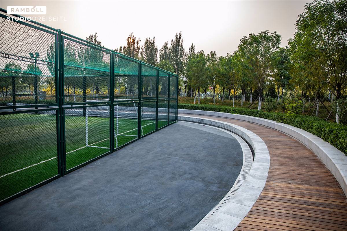 張家窩鎮(zhèn)中心公園從“生態(tài)、知識(shí)、健康”出發(fā),將綠地景觀與市民活動(dòng)相融合,打造成以全民健身活動(dòng)為主題、以海綿城市為主導(dǎo)、配套設(shè)施完善的城市公園,使今天的城市居民不必跋山涉水便可感受自然。