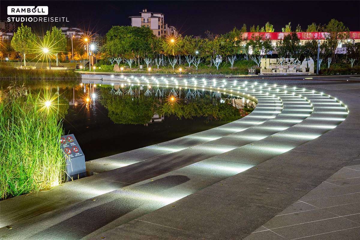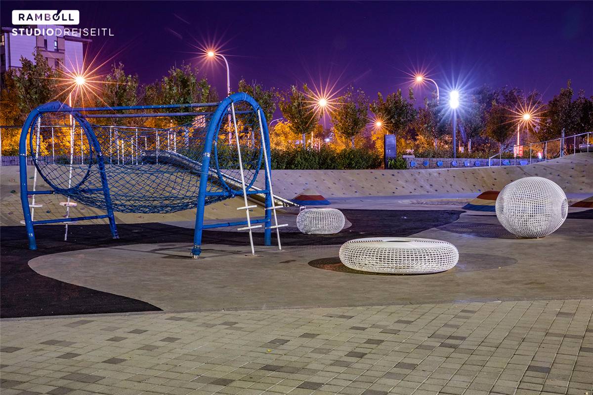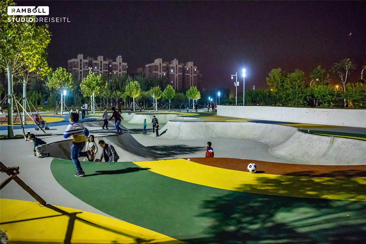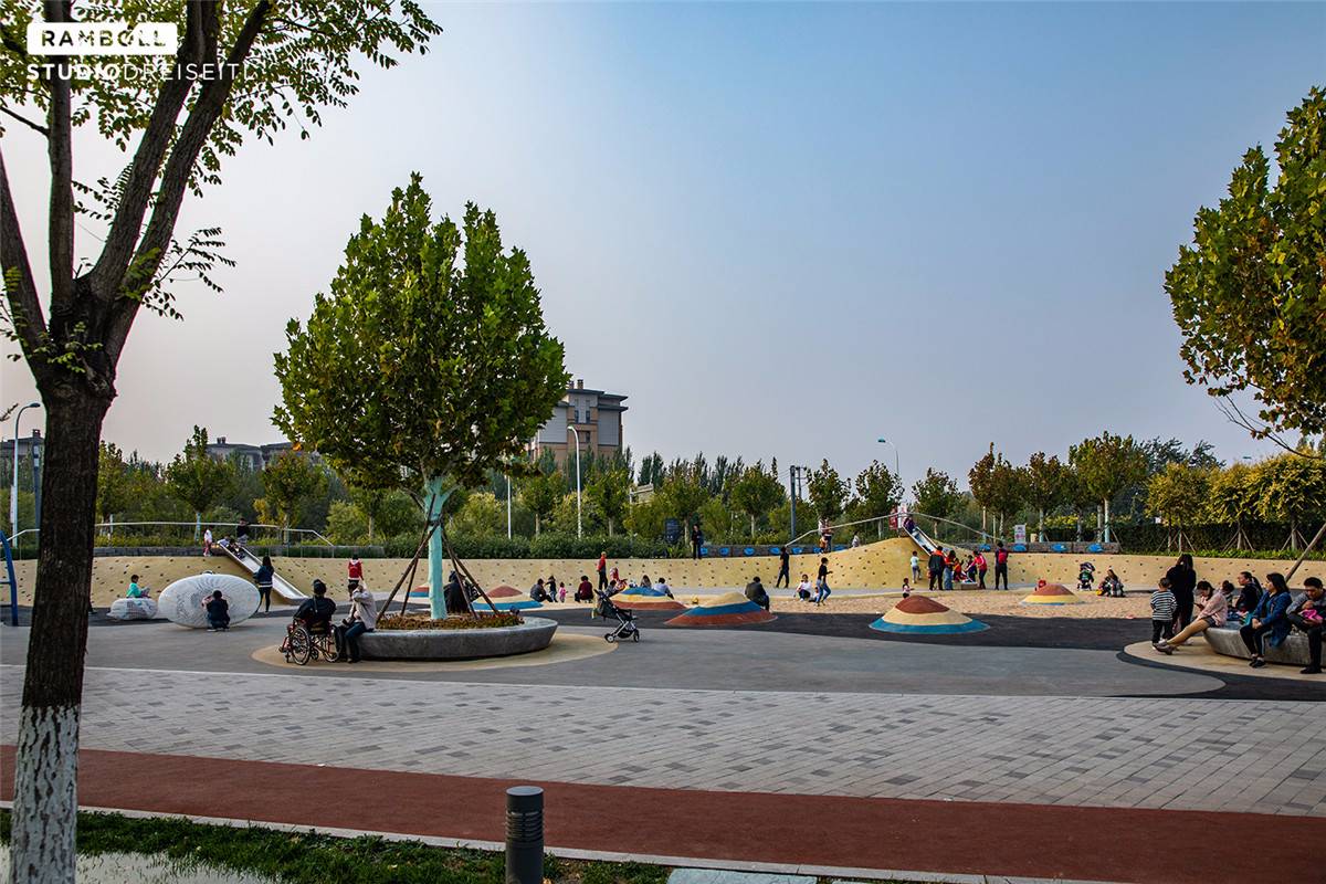 張家窩鎮(zhèn)中心公園從“生態(tài)、知識(shí)、健康”出發(fā),將綠地景觀與市民活動(dòng)相融合,打造成以全民健身活動(dòng)為主題、以海綿城市為主導(dǎo)、配套設(shè)施完善的城市公園,使今天的城市居民不必跋山涉水便可感受自然。