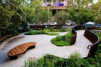 設(shè)計(jì)師受邀在繁華的墨爾本市商業(yè)中心設(shè)計(jì)一座街景花園,該花園的建造旨在為周邊居民及路人提供棲息休閑之所。