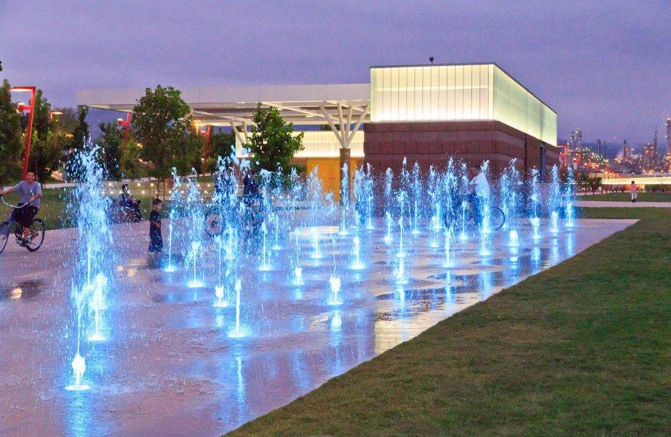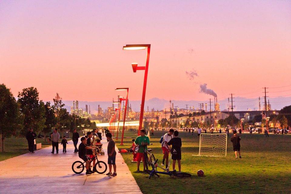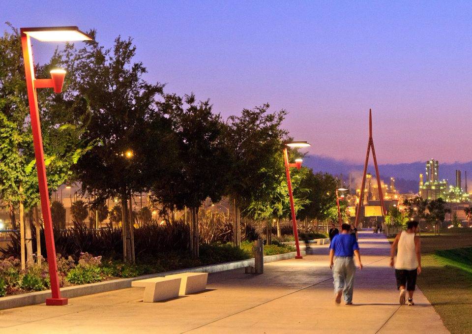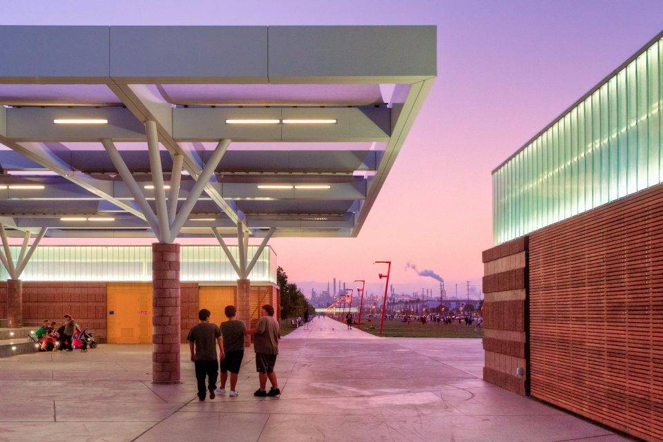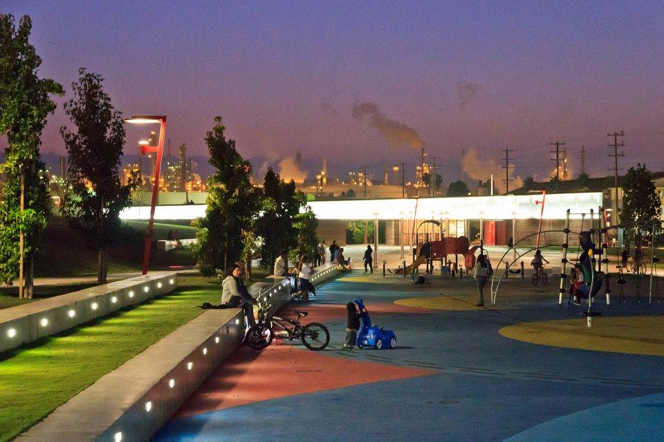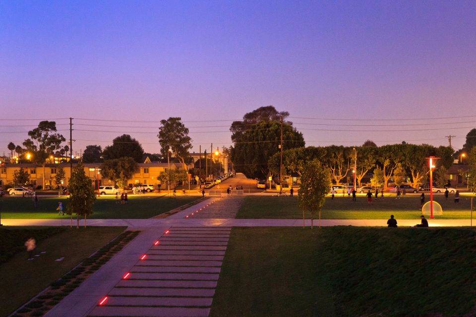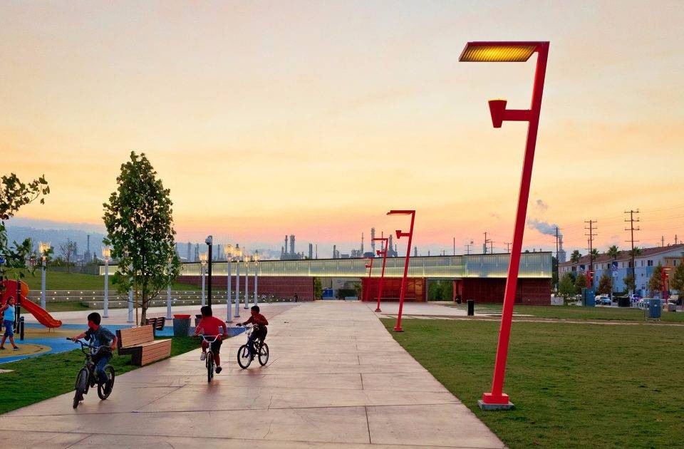 爾明頓社區(qū)曾是太平洋海岸線的一部分,但由于這個迅速發(fā)展的多樣性混合工業(yè)化航海設(shè)施——洛杉磯港,社區(qū)與濱水區(qū)分開 新的城市公園建造在12公頃的工業(yè)廢棄基地上,在視覺上重新與濱水區(qū)相連,并恢復(fù)了該社區(qū)。公園整合了各種積極和休憩活動功能—非正式演出、公共集會、社區(qū)活動、野炊、座椅、散步和觀賞—在廣泛的社區(qū)擴(kuò)展過程中確定下來。 開放空間作為公共娛樂設(shè)施,兼作現(xiàn)有社區(qū)開放空間,并同時為威爾明頓社區(qū)提供緩沖區(qū),隔開南部大規(guī)模作業(yè)港口。