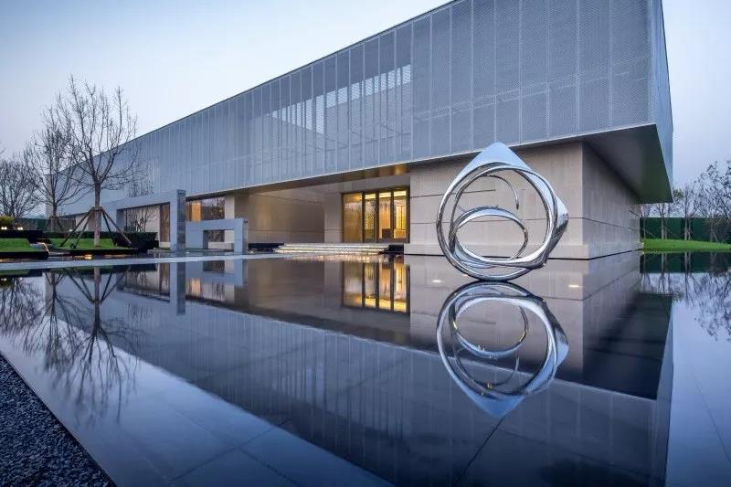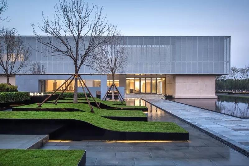 雍祥府建筑呈白色,優(yōu)雅輕盈而充滿(mǎn)親和力。設(shè)計(jì)師將藝術(shù)條帶向建筑蔓延,結(jié)合鏤空跌水景墻使景觀和建筑形成一體的三維立體景觀,入口區(qū)域設(shè)計(jì)一池境水面將建筑托起,界面打開(kāi),建筑倒影在水面上,展示在游者的眼簾。穿過(guò)通透的玻璃幕墻,模糊了所有的邊界,讓景觀、建筑與室內(nèi)融合在一起。整個(gè)空間晶瑩、清澈,宛若夏天的清風(fēng)。
