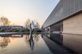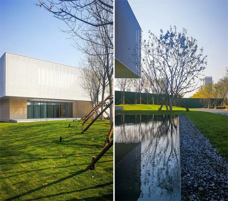 ▲界面打開(kāi),一池鏡水托起輕盈的建筑,讓它與人更加親和。