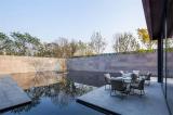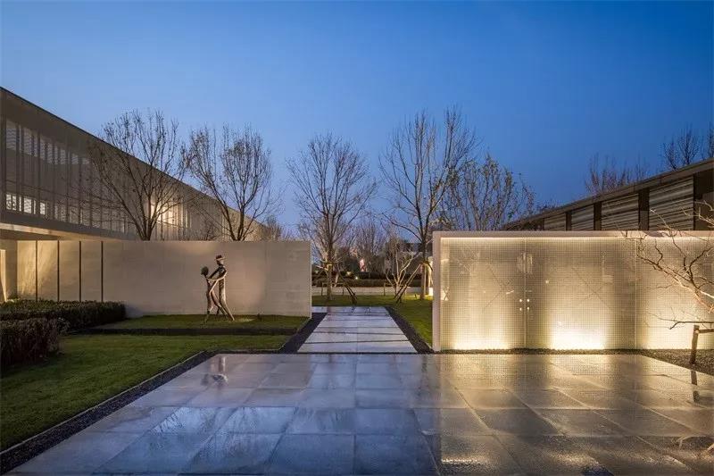 穿過(guò)充滿(mǎn)陣列節(jié)奏的空間,進(jìn)入昆侖御后場(chǎng)內(nèi)庭空間,與外場(chǎng)的動(dòng)相比,內(nèi)庭空間充滿(mǎn)寧?kù)o的禪意,空間現(xiàn)代、清新、精致,讓人不禁停留駐足。整個(gè)空間被自然環(huán)繞,靜坐庭中,視線的邊界由優(yōu)美的自然背景引向天空。仿佛身處溫暖而靜謐的秋日午后,隔絕煩擾、只剩內(nèi)心的平和與自由。
