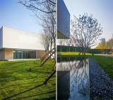 ▲樹(shù)陣斜線排開(kāi),引導(dǎo)著視線,將白色建筑自然地呈現(xiàn)在眼前。