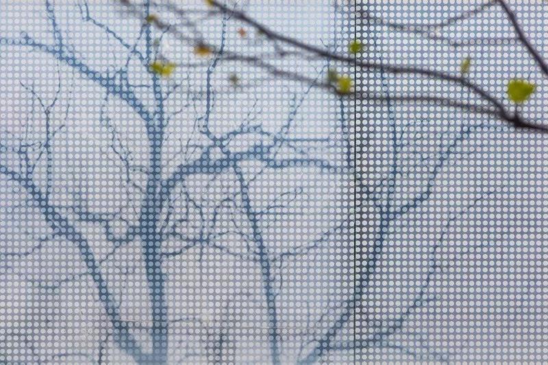 ▲溪流穿越樹(shù)影掩映的條帶間,清新自然。