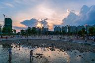 景觀設(shè)計(jì)師通過(guò)引入九龍江水進(jìn)入人工濕地島群中凈化和過(guò)濾,可持續(xù)、節(jié)能地解決景觀水質(zhì)、水量和防洪排澇問(wèn)題。利用總體高程,形成湖水區(qū)域內(nèi)循環(huán),創(chuàng)造水源涵養(yǎng)區(qū),以人工濕地、濕地浮島、雨水花園、生態(tài)明溝、綠色屋頂與墻面等諸多的生態(tài)工程和設(shè)施對(duì)水源進(jìn)行滲透、滯納、涵養(yǎng)和利用,引導(dǎo)收集和匯集處理雨水至湖體,補(bǔ)充景觀用水。約800畝的湖面與路面之間保持一米左右的高差,在雨洪、臺(tái)風(fēng)季節(jié)可以提供100萬(wàn)方的蓄水量。