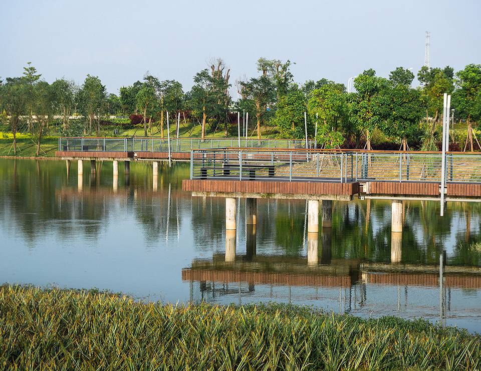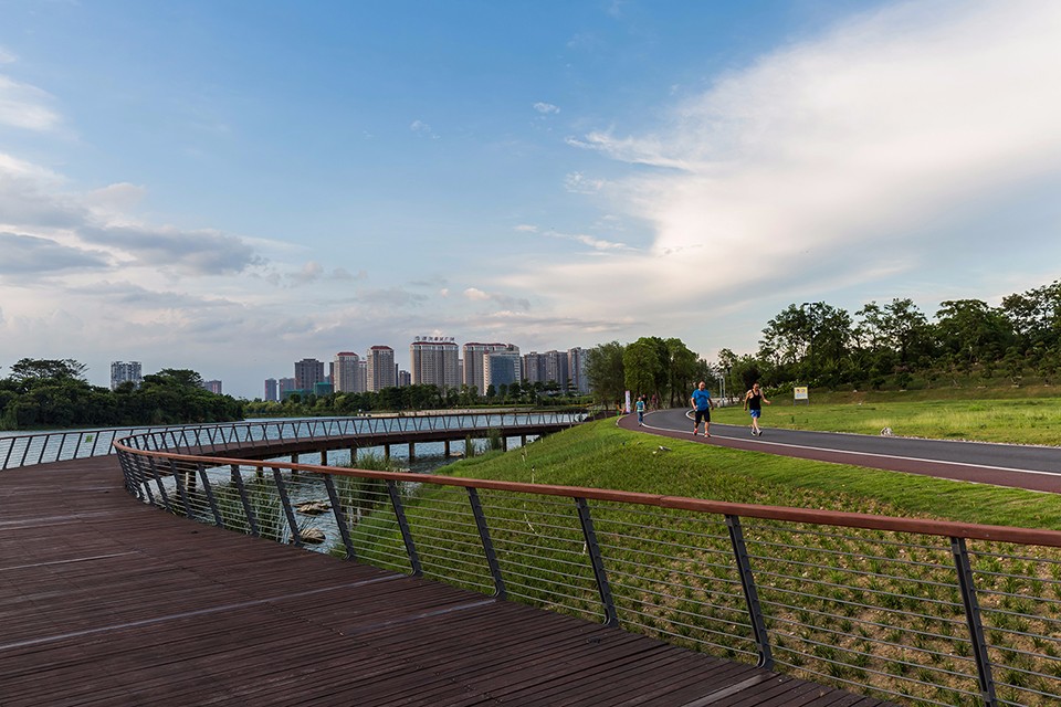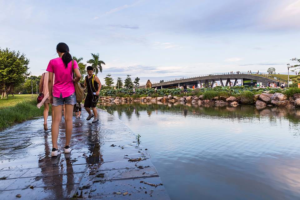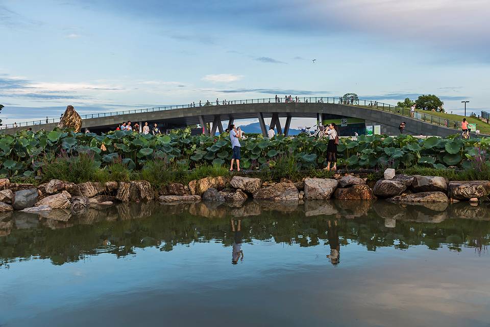 漳州碧湖市民生態(tài)公園是體現(xiàn)景觀都市主義理念的市民公園,生態(tài)導(dǎo)向型社區(qū)發(fā)展和公共休閑特色的城市名片。奧雅景觀設(shè)計(jì)團(tuán)隊(duì)在滯洪區(qū)現(xiàn)狀的基礎(chǔ)上,建立起相適應(yīng)的濕地生態(tài)系統(tǒng),架構(gòu)城市功能與開(kāi)放空間的有機(jī)聯(lián)系,形成健康又充滿活力的公共空間。
