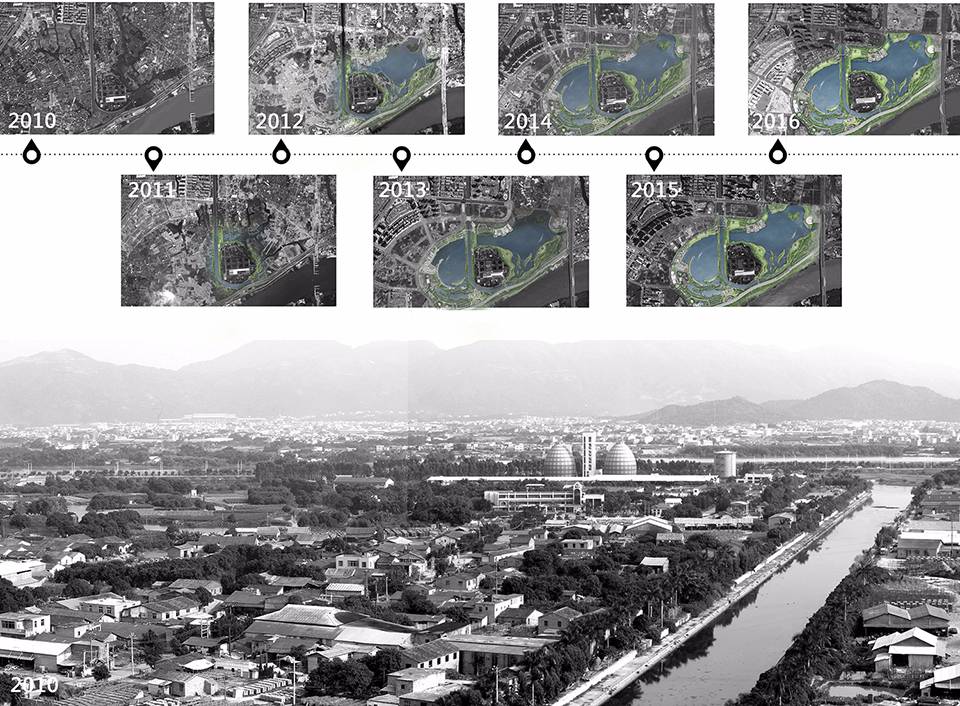 碧湖公園的建設(shè)是漳州當(dāng)時(shí)涉及面積、人口、投資最大的項(xiàng)目,地處洼地也對(duì)其滯洪區(qū)的功能提出更為苛刻要求。盡管其區(qū)位優(yōu)勢(shì)明顯,但開(kāi)發(fā)難度高,地方政府對(duì)如何處理新區(qū)與九龍江之間的洼地始終存在爭(zhēng)議。例如:如何解決場(chǎng)地中分布有一些鄉(xiāng)土景觀遺產(chǎn),如村口樹(shù)、祠堂和萃英廟等的現(xiàn)實(shí)問(wèn)題。在未來(lái)的漳州城市中心區(qū)將向城市東部轉(zhuǎn)移,實(shí)現(xiàn)廈漳一體化城市發(fā)展戰(zhàn)略的總體規(guī)劃下,當(dāng)?shù)卣畬?duì)于其滯洪區(qū)的生態(tài)意義有深刻的認(rèn)識(shí),沒(méi)有仿效在之前的中國(guó)城鎮(zhèn)化建設(shè),進(jìn)行粗暴的鏟平鋪設(shè)市政設(shè)施,而是進(jìn)行了關(guān)于這片場(chǎng)地規(guī)劃設(shè)計(jì)論證。