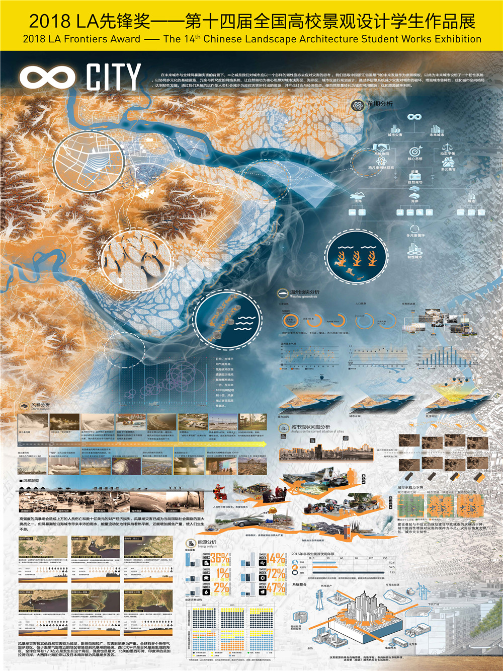 在未來城市與全球風(fēng)暴潮災(zāi)害的背景下,∞之城是我們對城市應(yīng)以一個(gè)怎樣的韌性姿態(tài)去應(yīng)對災(zāi)害的思考 。我們選取中國浙江省溫州市的未來發(fā)展作為參照模板,以此為未來城市設(shè)想了一個(gè)韌性系統(tǒng)。以協(xié)同多元化的基礎(chǔ)設(shè)施、冗余與跨尺度的網(wǎng)絡(luò)系統(tǒng)、讓自然做功為核心思想對城市淺海區(qū)、海岸區(qū)、城市區(qū)進(jìn)行規(guī)劃設(shè)計(jì),通過多層級系統(tǒng)減少災(zāi)害對城市的破壞,增強(qiáng)城市魯棒性,優(yōu)化城市空間格局,達(dá)到韌性發(fā)展。通過我們系統(tǒng)的運(yùn)作使人類社會減少為應(yīng)對災(zāi)害所付出的資源,并產(chǎn)生社會與經(jīng)濟(jì)效益,使自然能量轉(zhuǎn)化為城市可用能源,優(yōu)化能源循環(huán)利用。