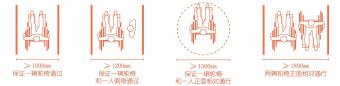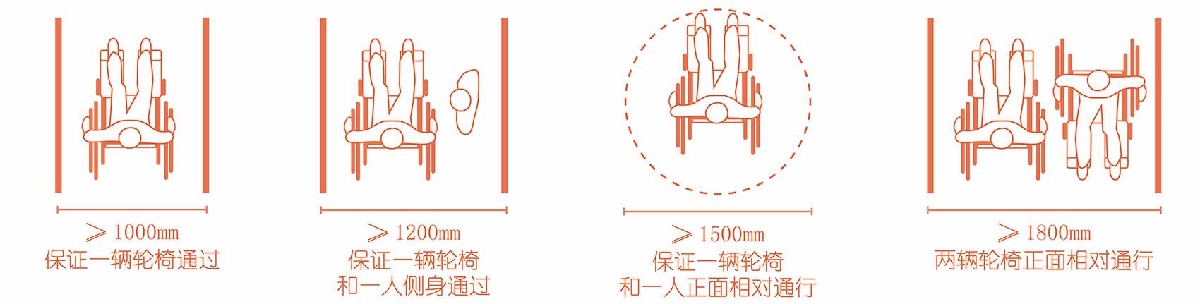 根據(jù)《無障礙設(shè)計(jì)規(guī)范》,坡道寬度≥1.80m時(shí),能保證兩輛輪椅正面相對(duì)同性。結(jié)合實(shí)踐經(jīng)驗(yàn),康復(fù)花園所有通道寬度均≥2.40m,給輪椅自由通行的安全尺度。