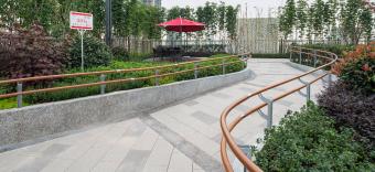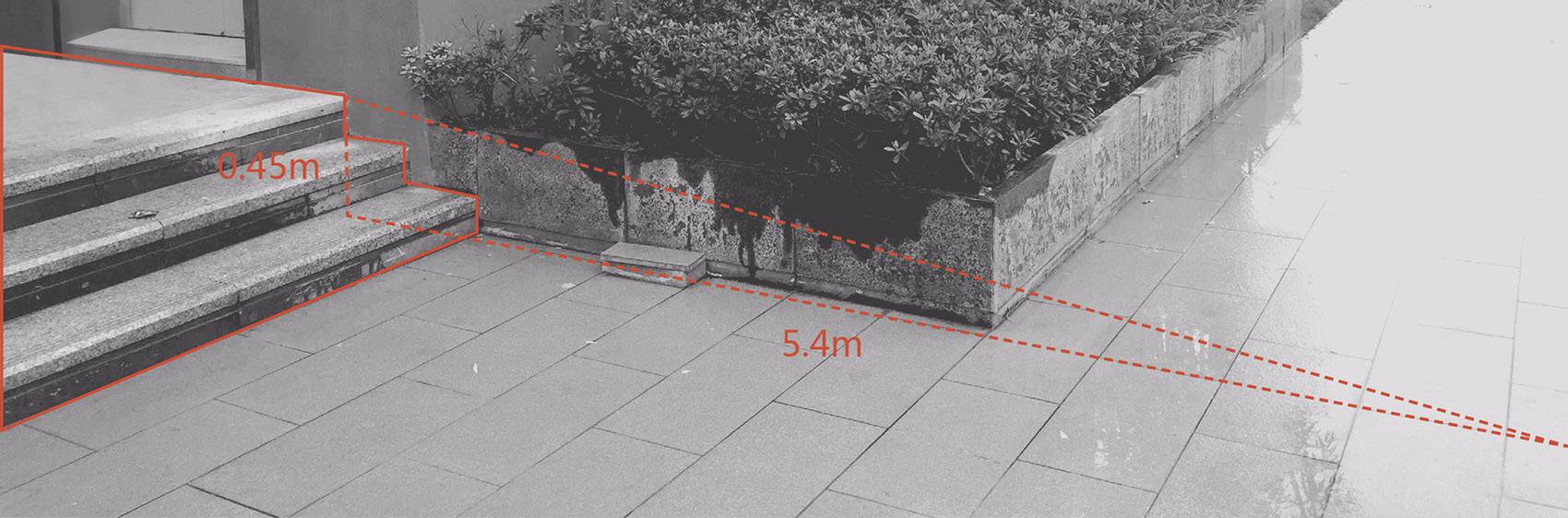 ▼場(chǎng)地將所有臺(tái)階改造為坡道,根據(jù)《無障礙設(shè)計(jì)規(guī)范》,在有條件的情況下將坡道做到坡度小于1:12,方便老年人通行