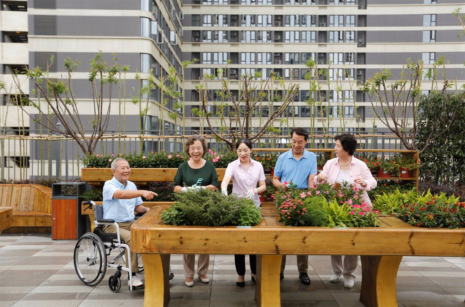 ▼老人與植物互動(dòng)(圖片來源:龍湖集團(tuán))