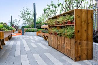 ▼雙層花池可鼓勵(lì)坐輪椅的老人起身鍛煉身體