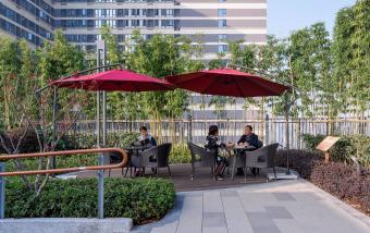 促進(jìn)老人與他人的互動(dòng)交流,讓老人的社會(huì)認(rèn)同感、歸屬感得以提升,是康復(fù)花園的重要作用。因此,設(shè)計(jì)團(tuán)隊(duì)在屋頂花園專門設(shè)置了供老人日常交流的空間。