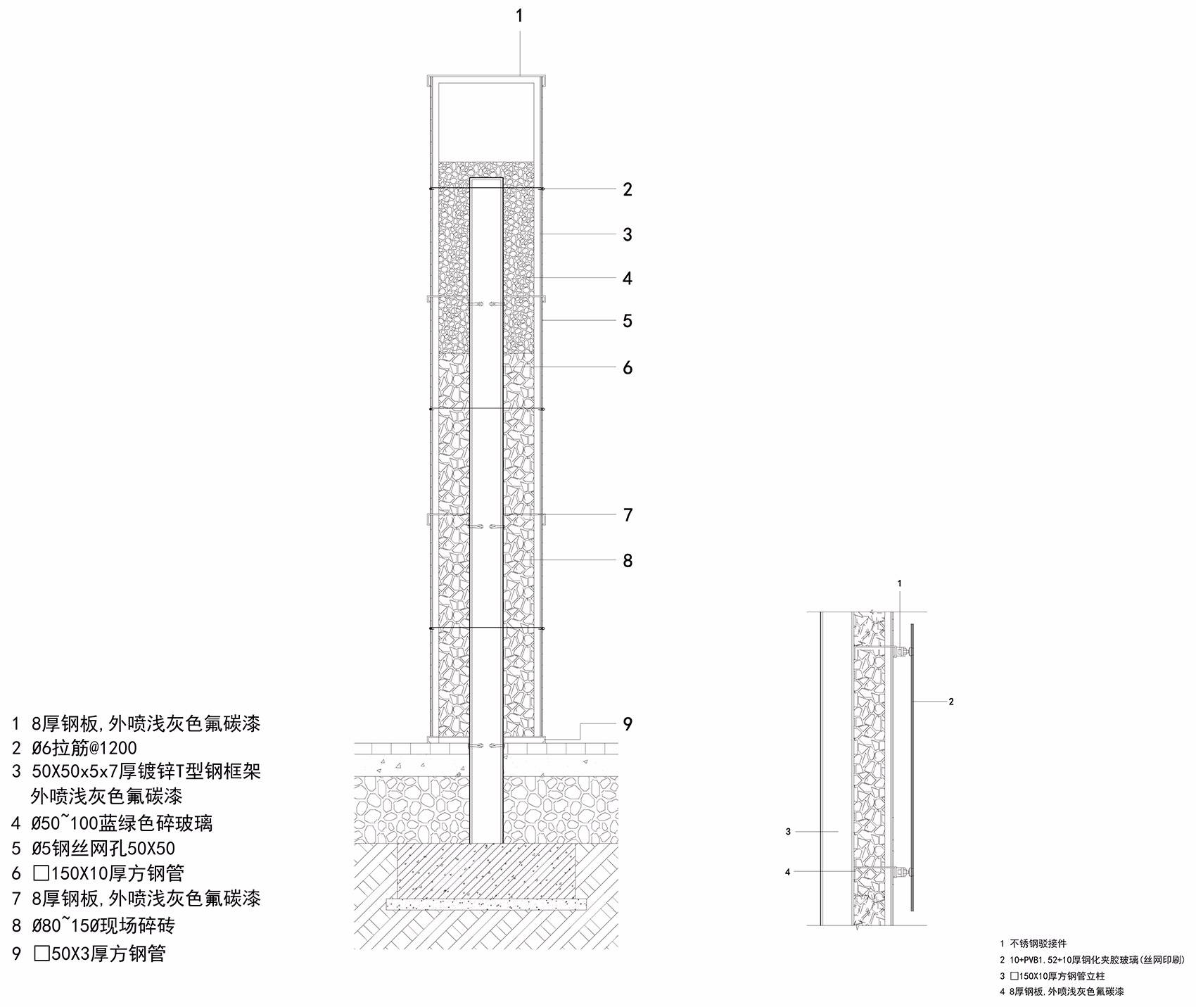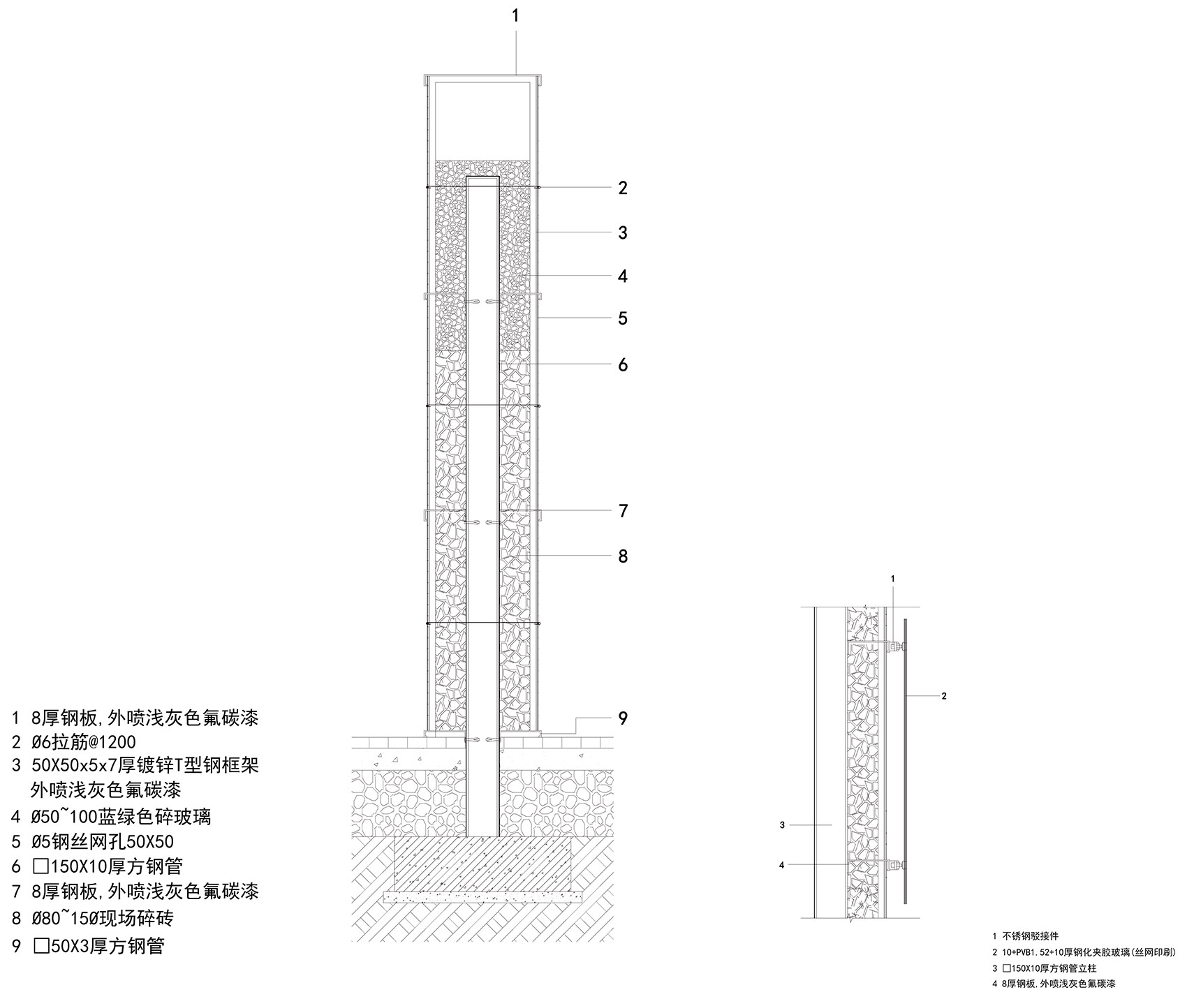 ▼永續(xù)廊四面設(shè)有石籠墻體