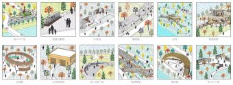 中國園林畫的一種形式叫做手卷或橫幅,“人們看圖時會從右側(cè)打開慢慢展開,手卷提供了一種連續(xù)的線性圖像以模仿游園的體驗—-在卷軸的開始會看到園門,穿過園門在園中漫步可以欣賞其中重要的精致,最后由位于卷軸末端的另一處園門離開?!保ǜ呔雍?,p21),這種線性圖像展現(xiàn)了園林中不同景致連續(xù)的故事性描述(敘事性),每個景致都自成一體有命名、山水樹石、亭臺樓榭等屋宇、人物活動、及題詩。觀眾從各個景致中可以體驗園林的細(xì)致情節(jié)和故事,在全部看完之后又能對整個園林有系統(tǒng)了解,“曲折繁復(fù)的園林空間可以清晰并富有邏輯地表現(xiàn)在手卷中”(高居翰,p137)。大興生態(tài)文明教育公園正如一幅慢慢展開的手卷,連續(xù)不同的景致構(gòu)成完整敘事性公園。當(dāng)內(nèi)容和陳述內(nèi)容的形式形成完整的結(jié)構(gòu),就成為“敘事”。