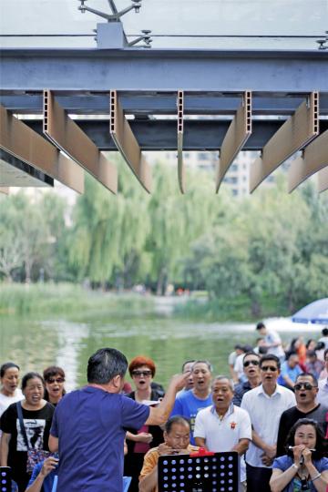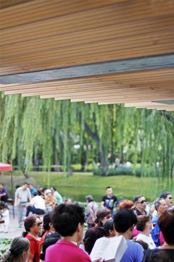 改造后,場地被重新納入到了周邊居民的生活之中。居民們和游客們在湖邊散步健身、小朋友喂魚看鳥,老年人聽?wèi)虺?,新的公園給它們提供了不同尺度的場地,同時也重新塑造了一種日常生活的景觀。